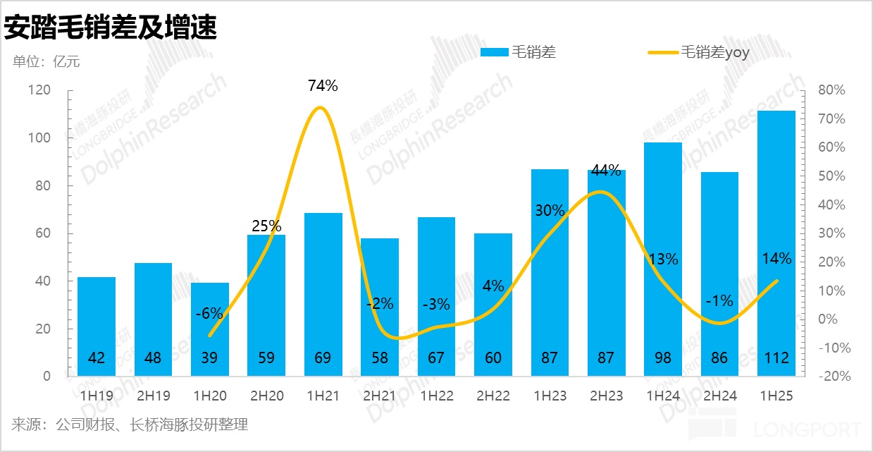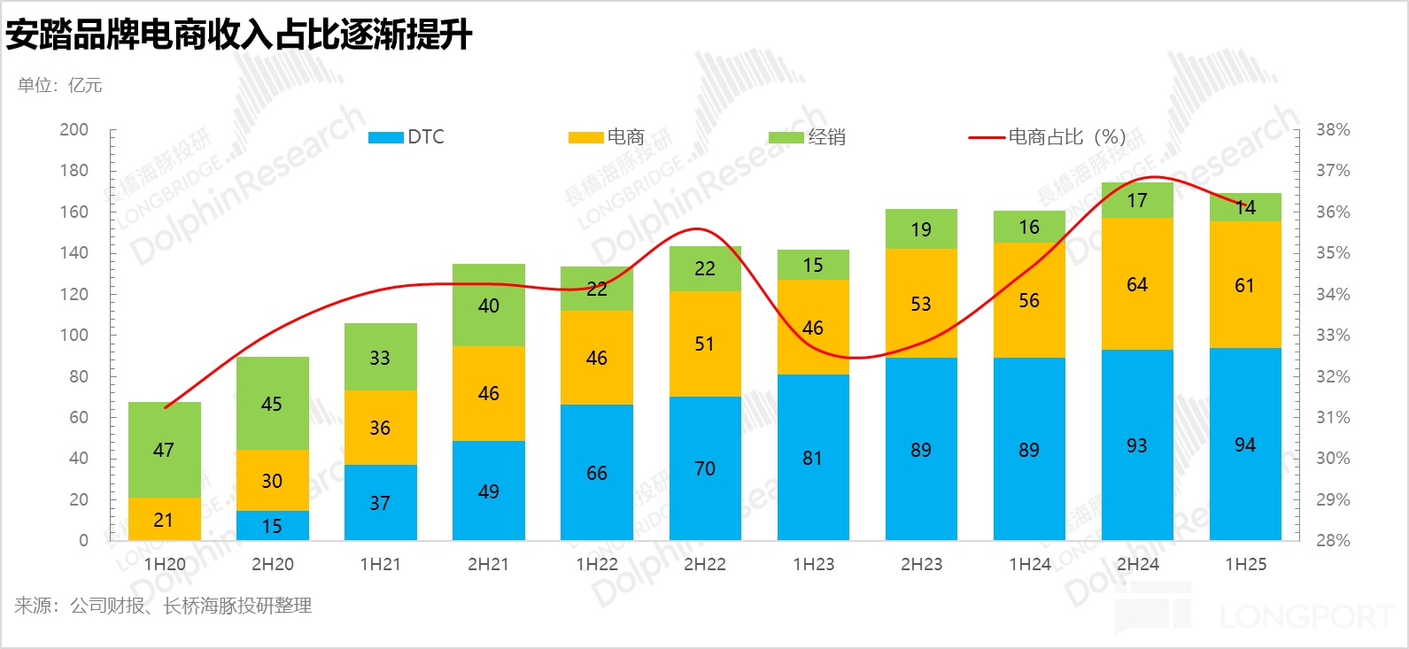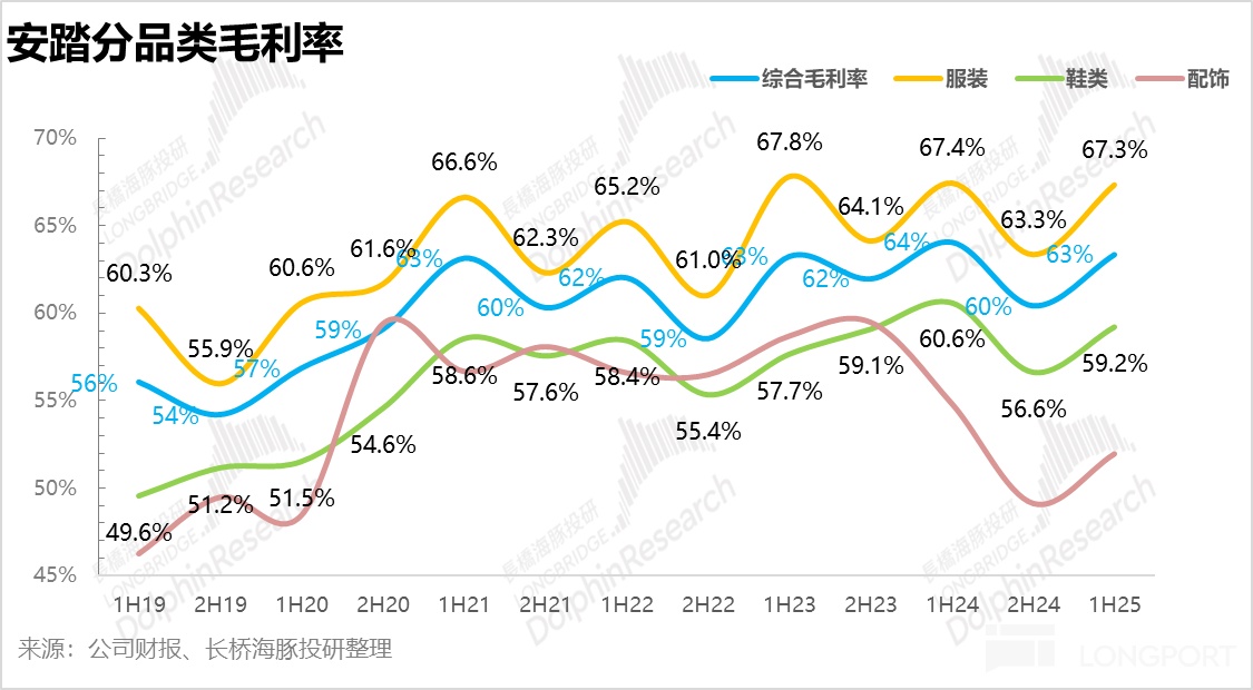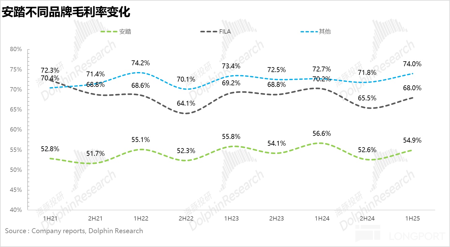核心原因在于公司在二季度加速渠道升级,将一二线城市旗舰店模式(如冠军店、超级安踏店)下沉至低线城市,导致大量门店关停改造,对低线城市客流依赖度高的加盟店造成了比较大的影响。伴随 Q3 完成改造后门店重新开业,海豚君认为下半年公司的门店流水有望逐步恢复常态。