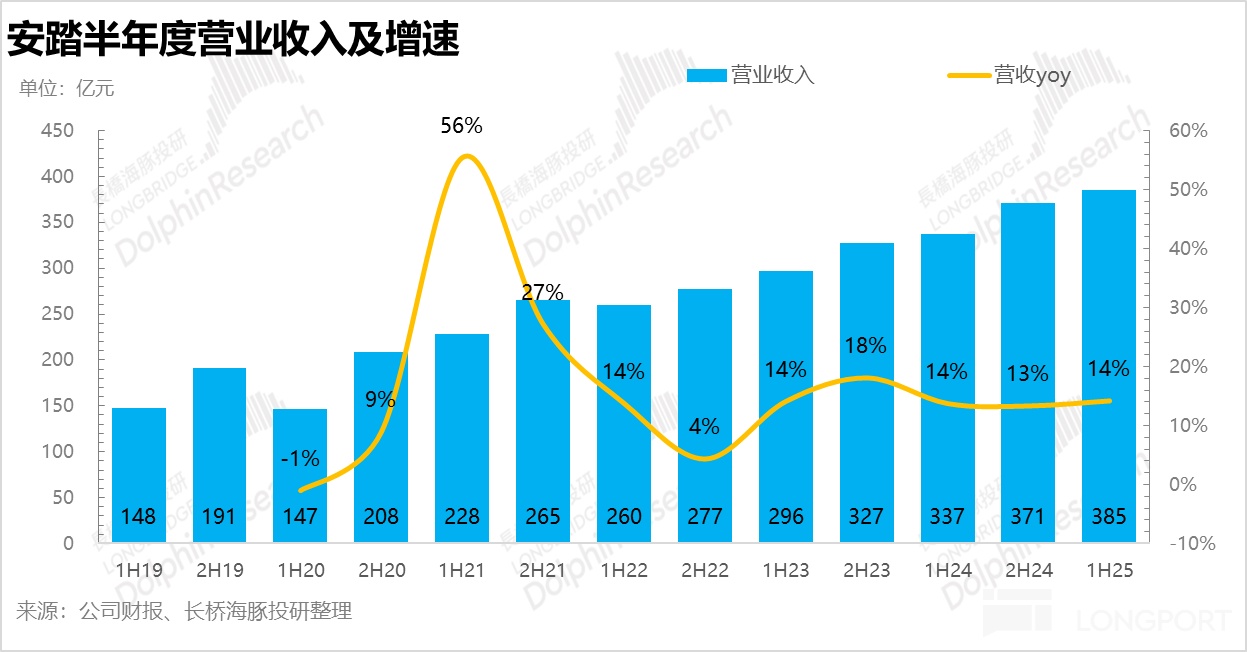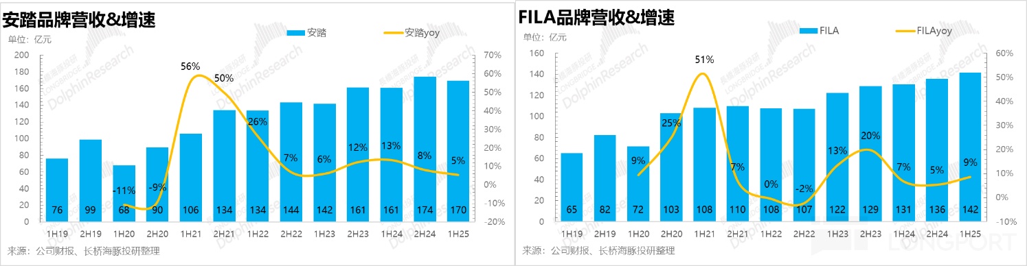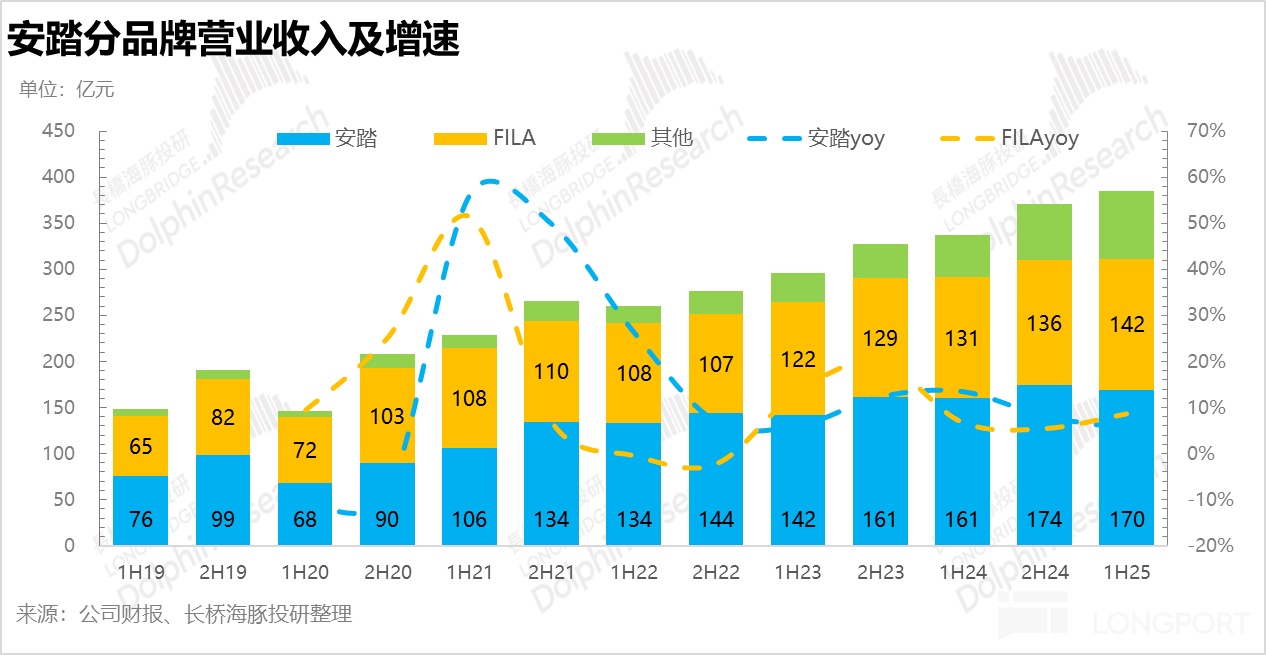 1.整体业绩保持平稳。公司 25H1 实现总营收 385.4 亿元,同比增长达到 14.3%,小超市场一致预期(381 亿元)。但由于公司在电话会里对安踏主品牌的指引从高单位数下调至中单位数,引发了市场对增长持续性担忧,因此业绩出来后股价有所回落。