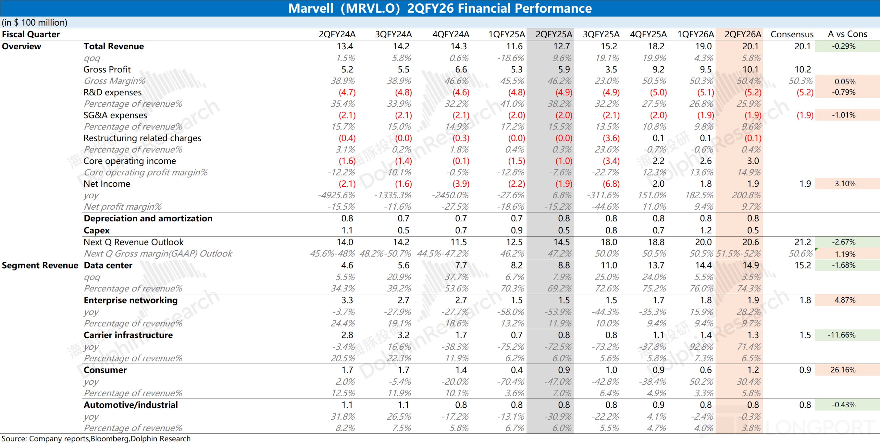 以下是迈威尔科技 Marvell2026 财年第二季度的财报电话会纪要,财报解读请移步《迈威尔科技 Marvell:云大厂花钱更慷慨,ASIC 为何没 “借上力”?》