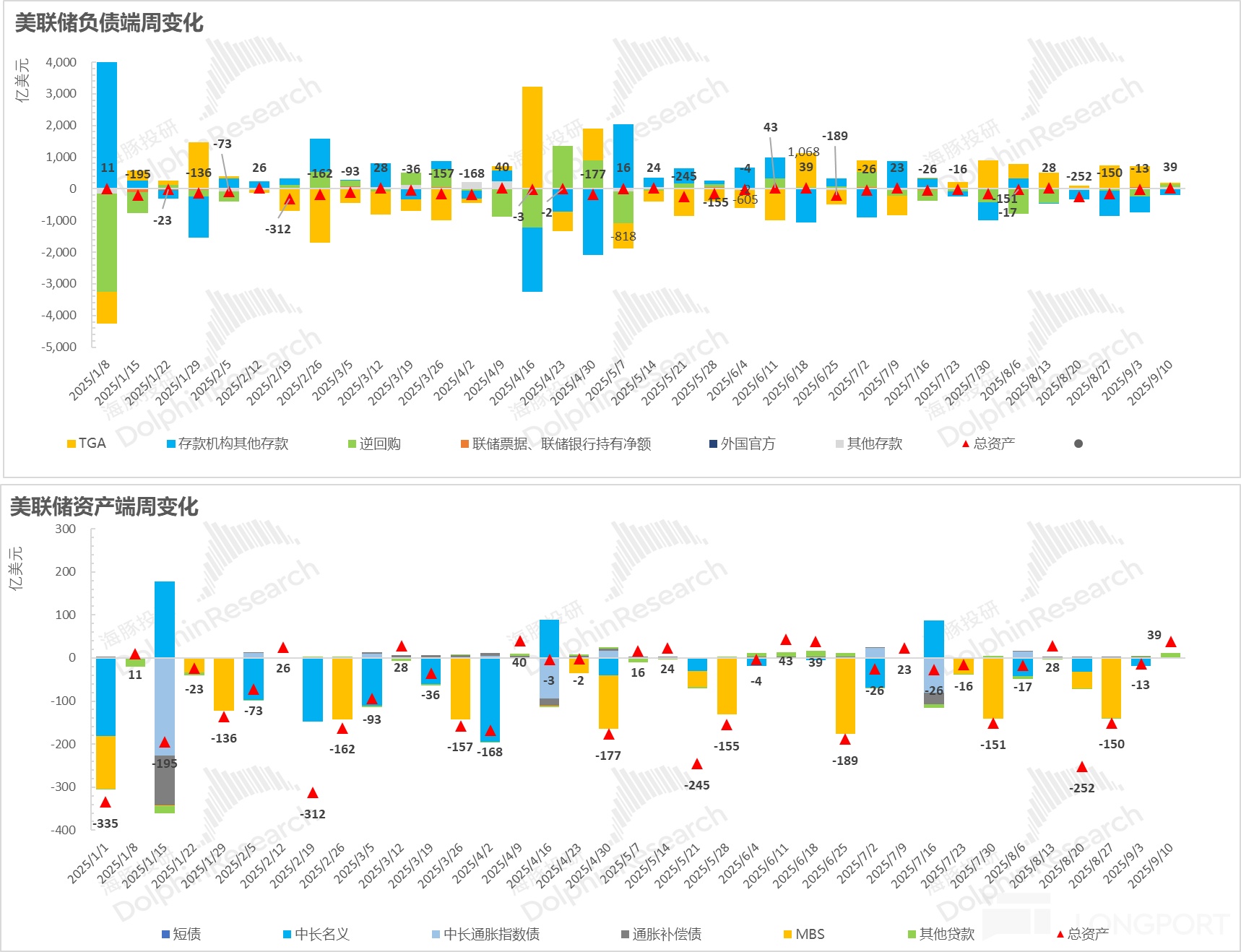 短期而言(9 月份而言),只是发债带来的小的流动性冲击,且这个冲击在上周表现并不明显:财政部在最近的一周放缓了发债重建 TGA 账户的进度,截止 9 月 10 日周,TGA 余额重建到 6675 亿美金。
