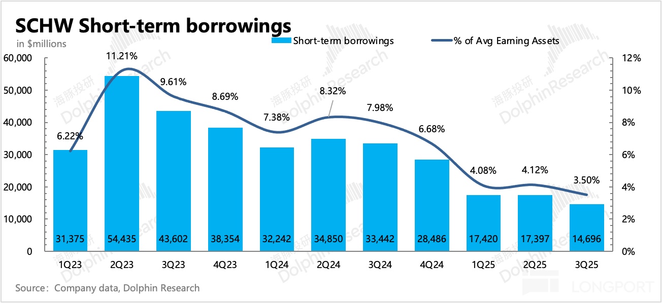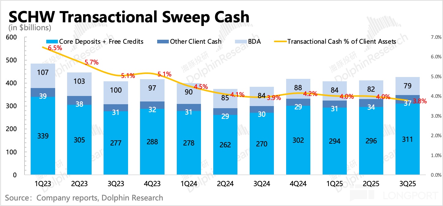 (3)有效的现金管理:通过将客户闲置资金自动转存从嘉信银行变换到外部合作的银行(TD 银行),即将客户存款从表内变相转移到表外,实现轻资产运营,来减少潜在的运营风险和成本拖累。