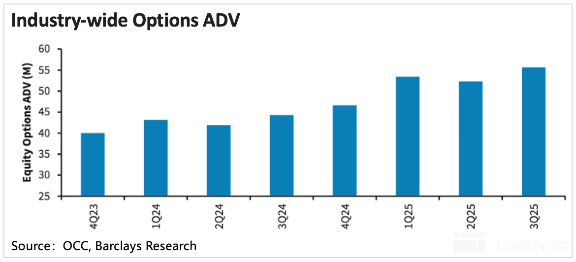 在此期间用户交易情绪逐渐修复 4 月关税下的阴影,嘉信的 STAR 指数自 5 月起逐月升高,表明平台内投资者风险敞口的上升。整个行业中,期权、融资融券活动也相对活跃,环比上季度规模明显增加。
