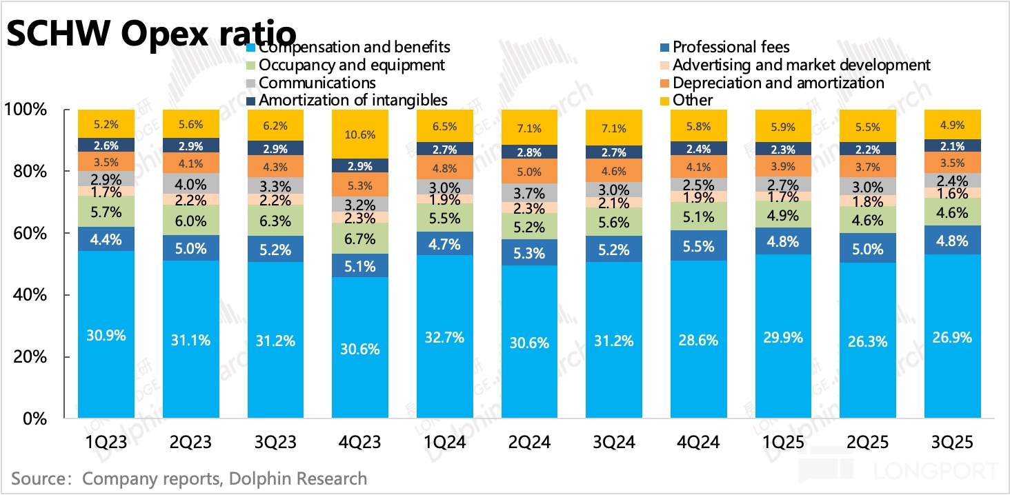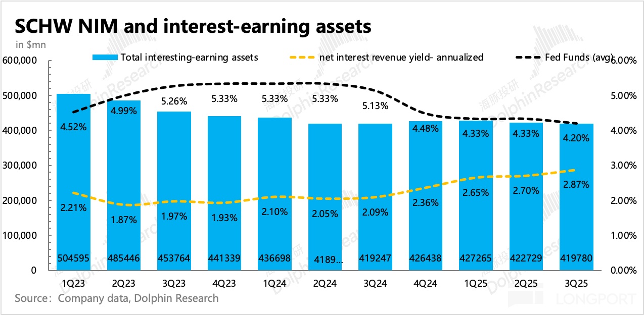 $嘉信理财(SCHW.US) 三季度业绩属于预期中的还不错,亮点在利息、交易收入,主要体现降息预期下目前资本市场交易活跃度的提升,以及公司作为龙头,自身积极有效的现金管理和规模效应下的成本优化。