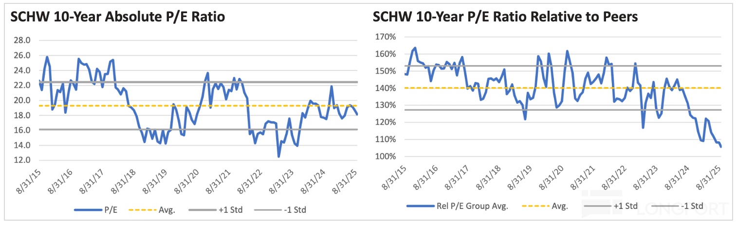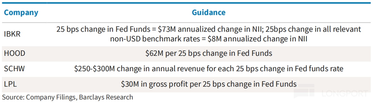 但嘉信的估值也不算高,目前远期 1 年估值 18x P/E,是低于 2023 挤兑危机之前、正常经营下的中枢水平 20xP/E,侧面说明当下已经计价了一些后续降息的负面拖累。