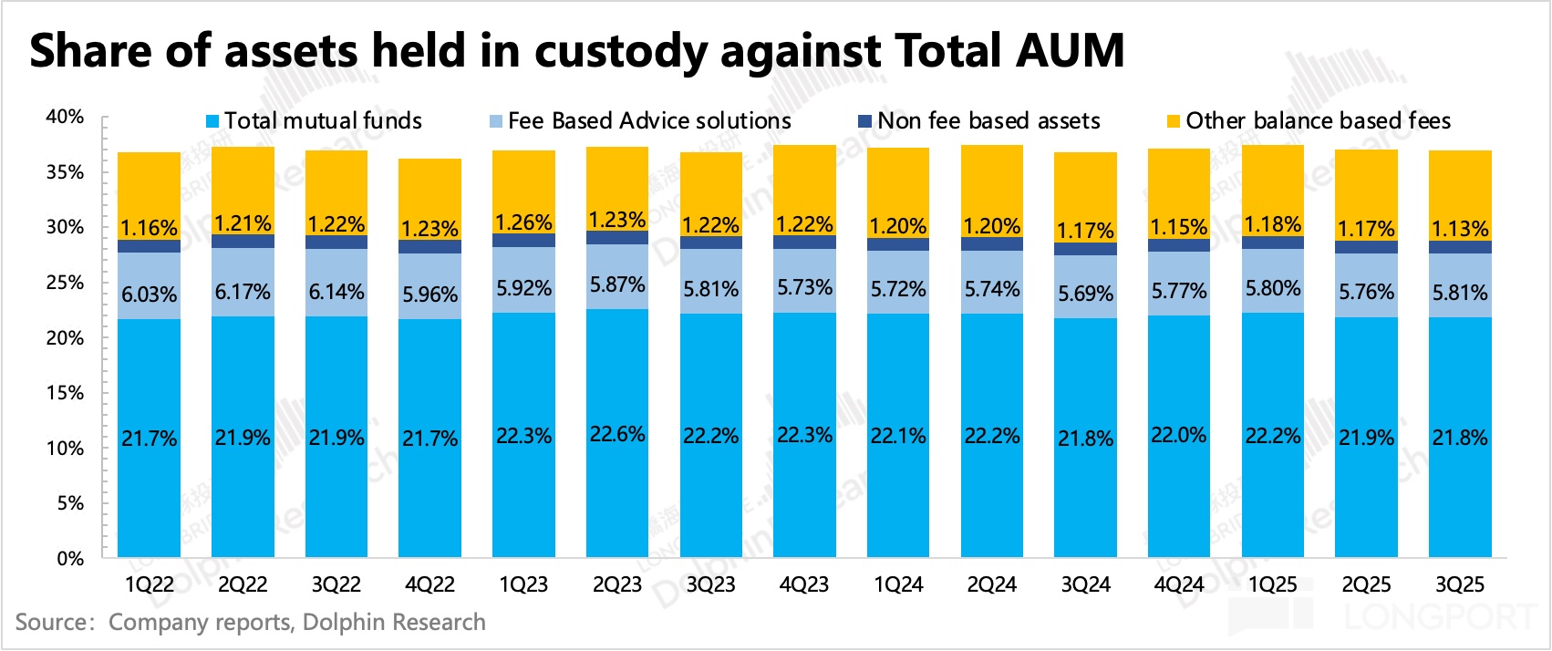 4、财富管理业务:三季度同比增长 13%,资管主要靠规模拉动增长,因为无论是 1P 的基金管理费还是 3P 的基金分佣,综合费率都是往下走的。出于降息预期的影响,用户将更多的闲钱投入到了货基或者共同基金中,同时接受投顾服务的用户资金在三季度也有明显增加,从而带动了财富管理规模的上升。