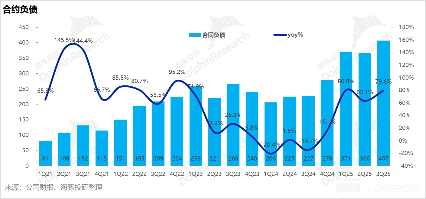 从宁王三季度合同负债同比再次拉升,合同负债 407 亿,环比上季度再增 40 亿元,继续边际向好,短期在手订单量还是处于不错的水平。