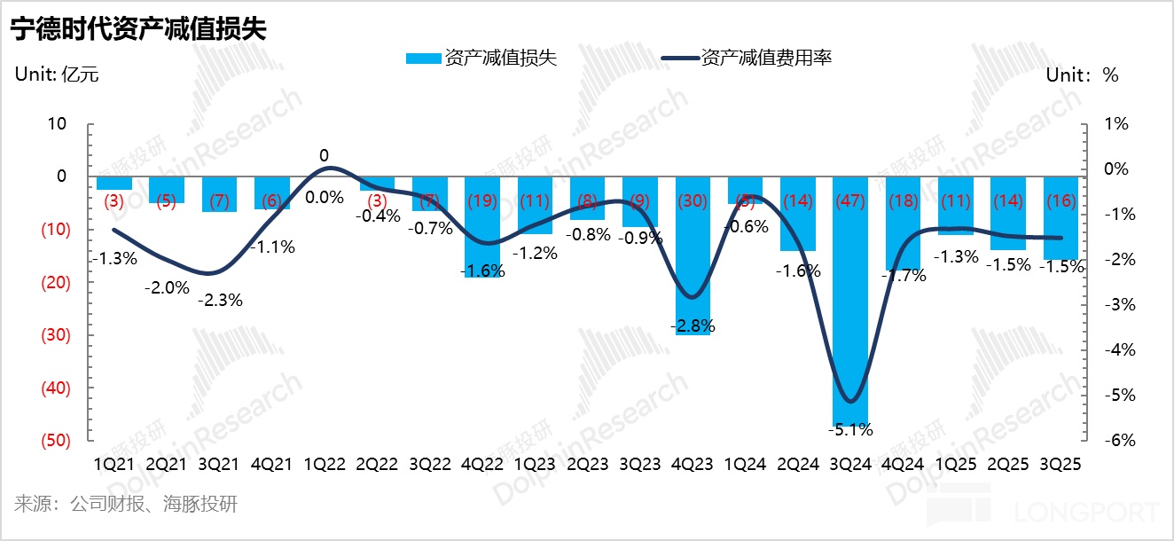 2025 年三季度资产减值 16 亿,环比上季度 14 亿小幅提升,由于宁王的资产减值主要分为: