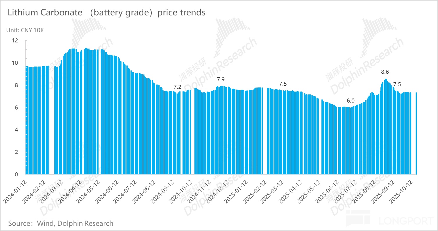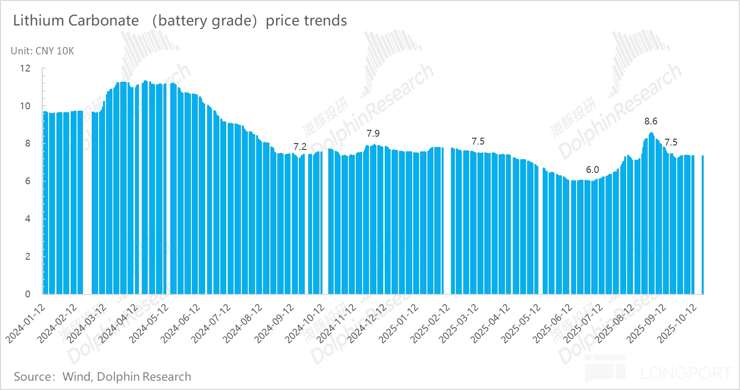 而这个启动的一个信号就是碳酸锂价格的回升,而目前碳酸锂价格基本稳定在 7.5 万元上下。