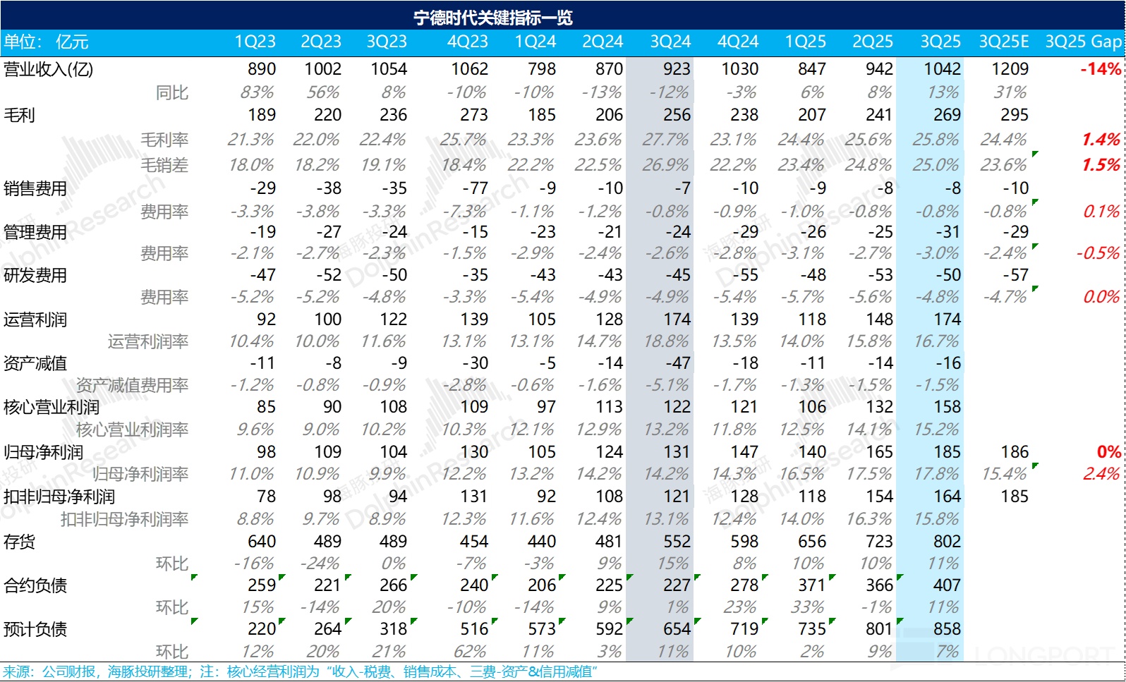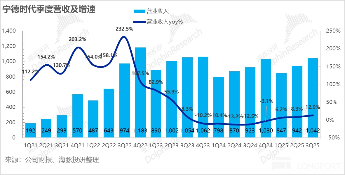 8 月以来在储能需求超预期、国内产业反内卷、传宁王 2026 年排产超 1Twh,宁王股价已拉升 30%。相信息充分酝酿后,宁王的三季度答卷就本身业绩来说,无论是从收入上还是利润上并无大幅超出预期的增量信息。