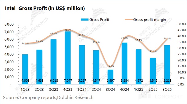 1.2 毛利及毛利率:英特尔在 2025 年第三季度实现毛利 52.2 亿美元,同比/环比都有明显增长。在收入小幅增长的情况下,主要是受毛利率提升的带动。