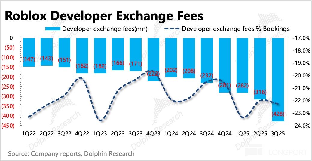 4、继续提高开发者分成:海豚君说过,让我们对 Roblox 中长期保有信心的关键变化,就是公司开始有意识的提高对开发者的分成。短期视角,提高开发者分成多少会影响盈利释放。