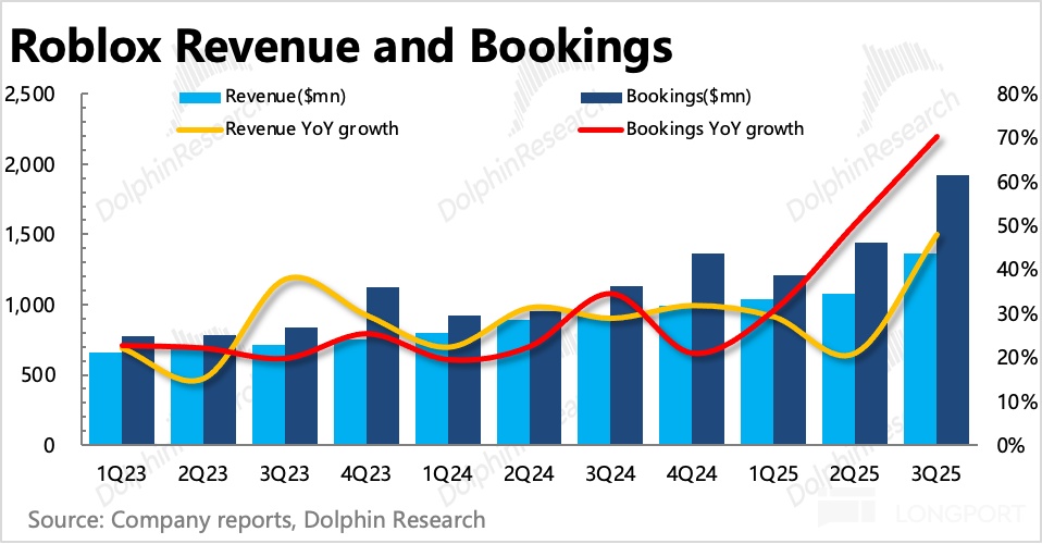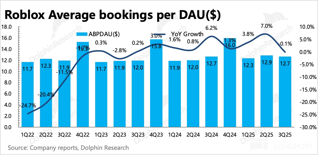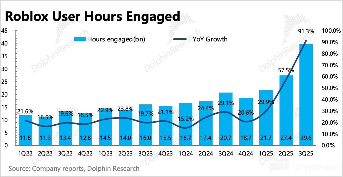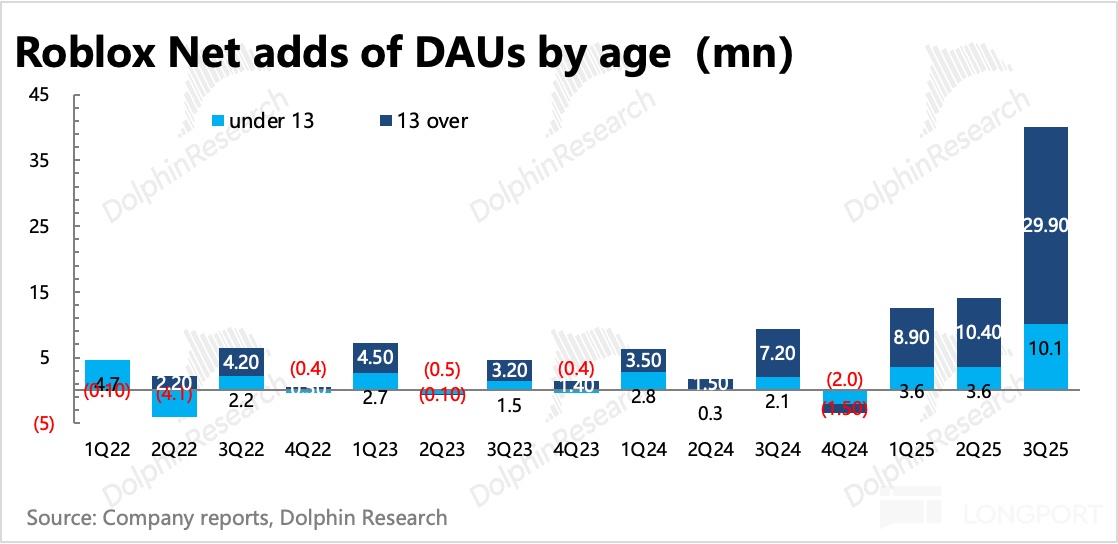 但这一场景似曾相识,在 Roblox 历史财报季中多次出现。海豚君认为,由于游戏本身的周期 + 返校日等特定扰动,季节性波动难以避免,况且在游戏里,当期疯狂暴增,下季度出现大量流失是正常现象。拉长视角看,短期扰动不改长期扩展态势。