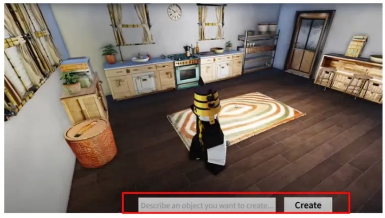 如下图,3 月推出的 Roblox Cube 模型,方便开发者自动生成内容: