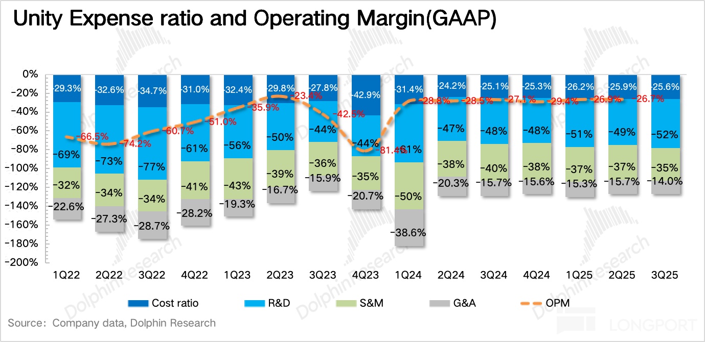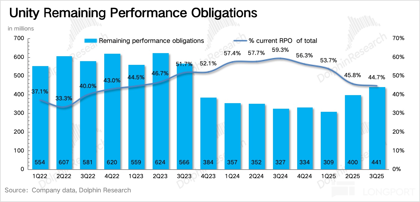 海豚君认为,这应该主要由去年 10 月推出的 Unity 6 推动。Unity 6 引擎功能做了很多丰富和升级,综合单价也更高,因此不看新客户,光老客户迁移就有利于推动引擎收入增加。从机构调研来看,目前已经有 50% 以上的老用户迁移到了 Unity 6,按照此前预期,应该还有 20-30% 有意向迁移的老用户仍在规划后续迁移。