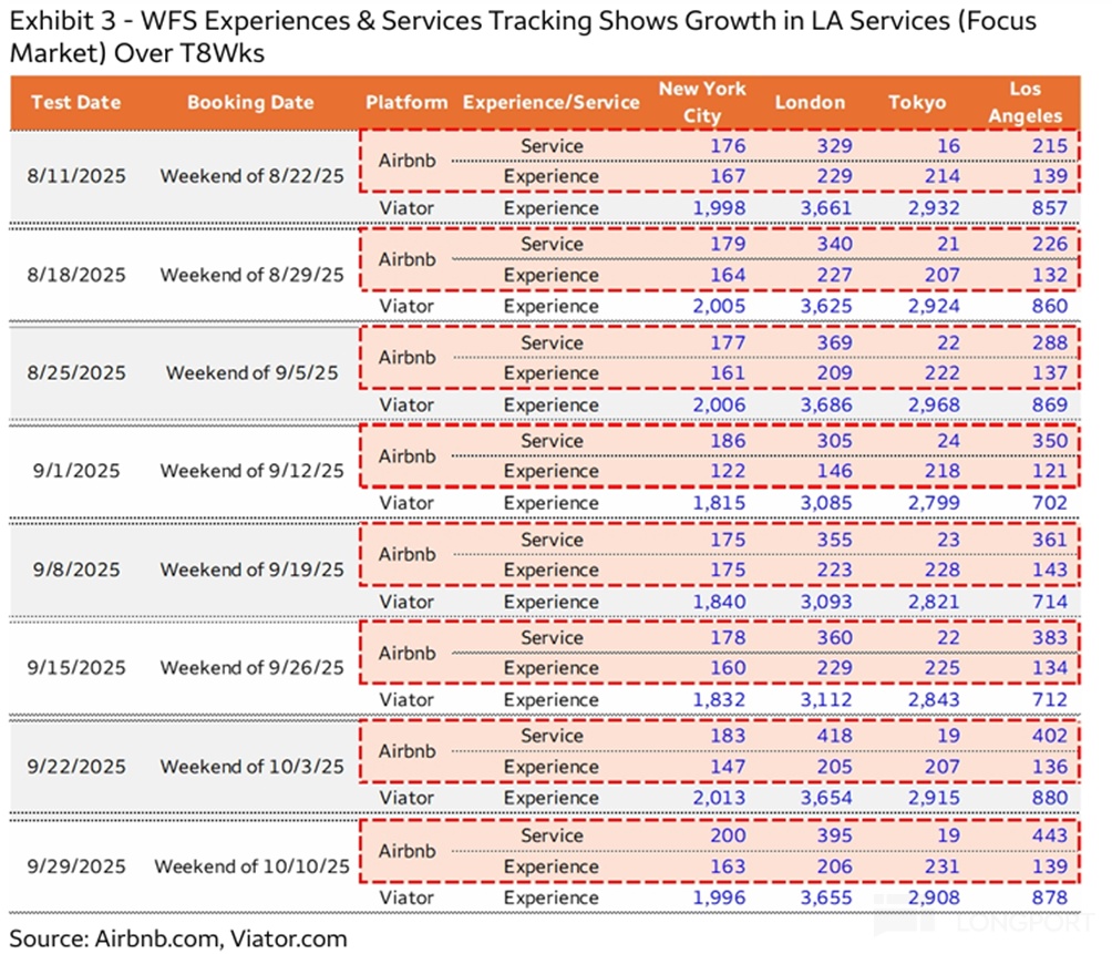 1)意图作为第二增长曲线的 “体验” 业务增长依然缓慢。根据统计目前在纽约、伦敦等全球大城市内的 “体验” 供给仍只有数百量级,且较 5 月推出时,也仅仅增长了 1~2 倍。难以贡献可观的增量。