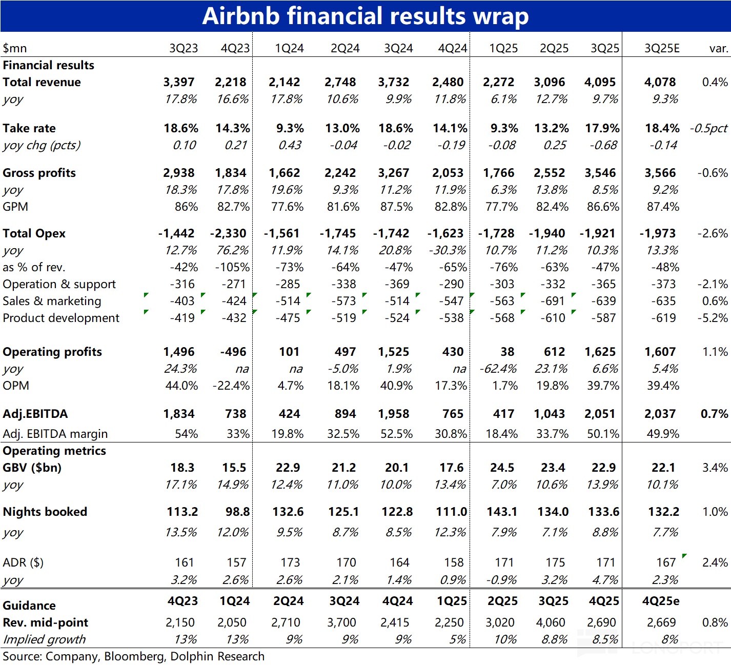在此拖累下,本季 Airbnb 的营收同比增长 9.7%,跑输 GBV 增速,且也是只是大体符合预期了。