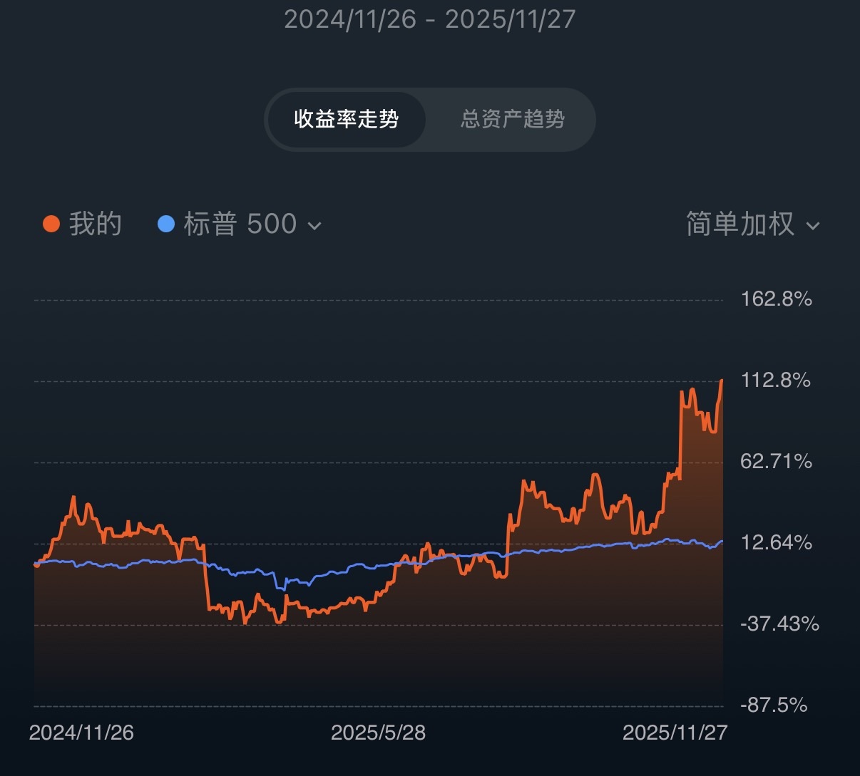 这就是我在币圈的所有故事。为了不坐吃山空,也为了让资本继续滚动,我转战了美股。我目前还在读博,主攻深度学习方向,这让我对 AI 的发展有着比常人更深一点的理解。我很早就意识到特斯拉纯视觉 FSD 的护城河以及机器人市场的巨大前景,所以在特斯拉 180 左右的时候,在没有研究任何估值体系的前提下,我拿着大部分现金梭哈了。运气很好,马斯克赌赢了美国大选,特斯拉迎来 488 的高光时刻,我的身价第三次触碰到了 1000 万的门槛。