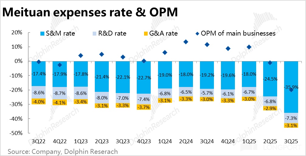 6、收入走平,成本和费用都暴涨:本季毛利率仅为 26.4%,比上季再下滑了 6.7pct,导致毛利润额同比减少约 116 亿。主要原因配送收入由于减免不增反降,而配送成本的增长(+24%)则大概率会高于单量增速(因给骑手的额外补贴)。