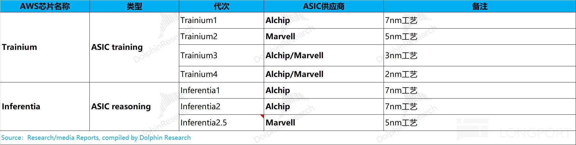 在定制 ASIC 方面,亚马逊的重心侧重在训练 AI 模型的 Trainium 芯片。结合公司及行业信息看,亚马逊接下来的 Trainium3 和 Trainium4 依然是在 Marvell 和 Alchip 两家中同时推进,公司还将面临着来自台厂的竞争