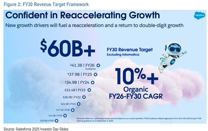 更长期视角,公司设置了 30 财年实现 600 亿的营收目标(不包括并表 Informatica 的影响),隐含FY26~30 年的收入复合增速能保持在 10% 左右,虽也没有较当前有明显的提速,但至少反击了市场担忧的公司后续增长会继续放缓,最终可能仅会略高于 GDP 增速的中个位数%。