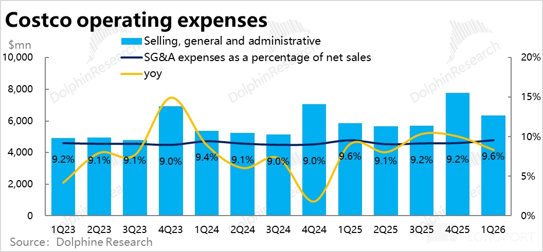 抛开预期差和增速波动,最主要的是缓解了通胀环境下,市场对 Costco 的费用率可能有趋势性向上因素,从而长期压制利润率扩张的担忧。但同样的,此次一个季度内的改善也未必证明上述担忧已完全解除,还是要继续观察。