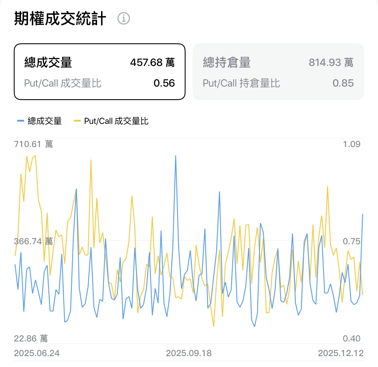 期权未平仓合约:814 万张,Put/Call 持仓量比 0.85