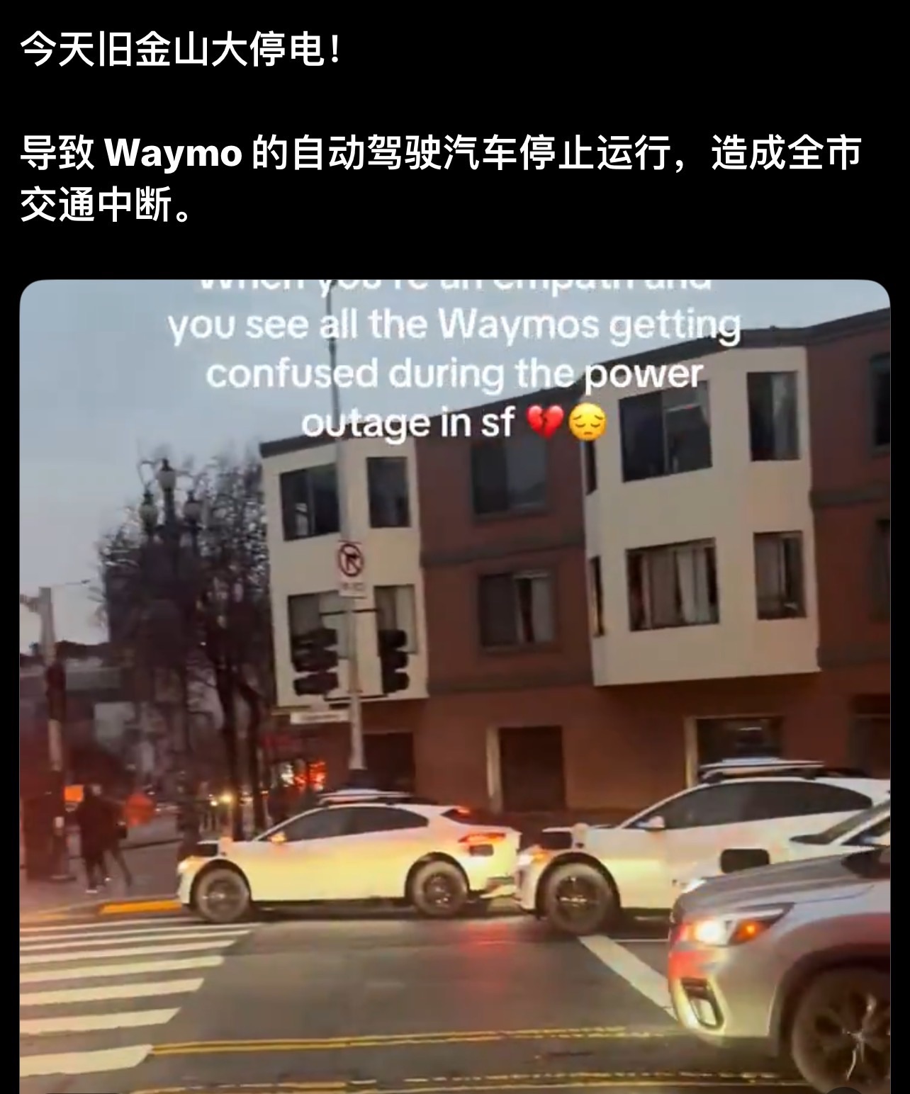 旧金山一次区域性停电,直接导致大量 Waymo 车辆集体停驶。