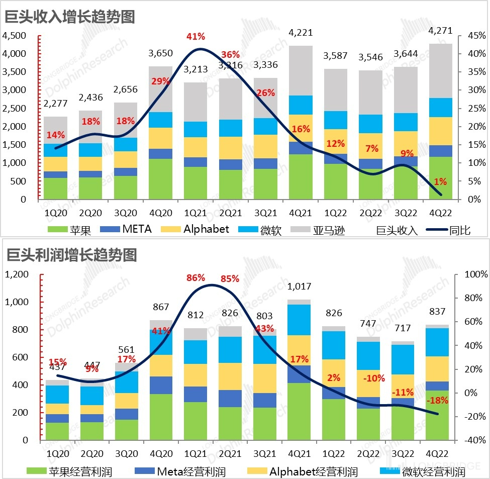 (3)不同于上季度之后,海豚君判断中对巨头的回避,在宏观 “轻增长/浅衰退、美股波动向上” 概率增加的情况下 + 个股 “降本增效,对内开刀” 之后,巨头的机会已经可以开始关注起来。