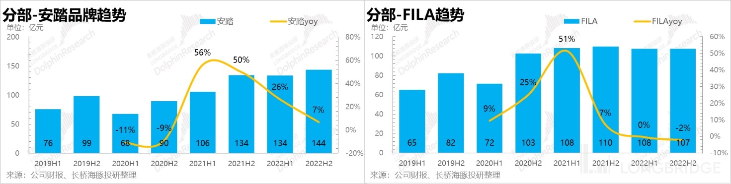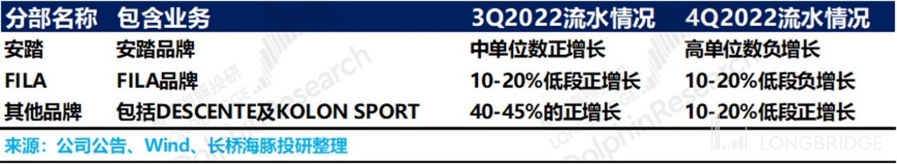 而 FILA 由于终端零售的负面影响,即使是在电商这一块有一些弥补,但整体还是呈现下滑趋势。