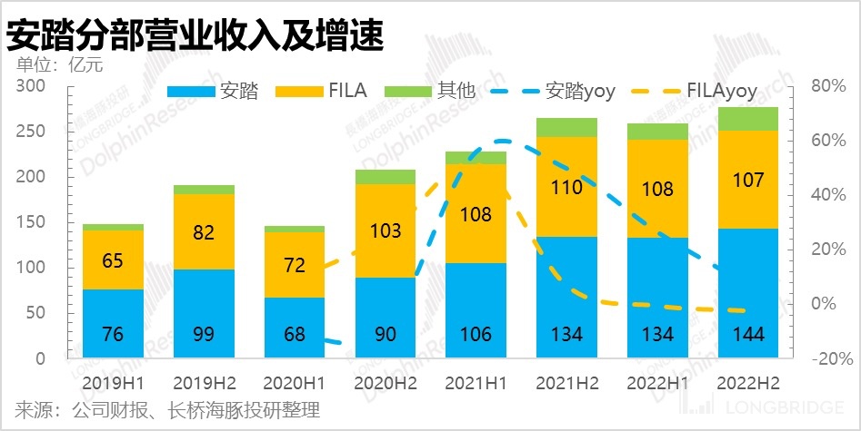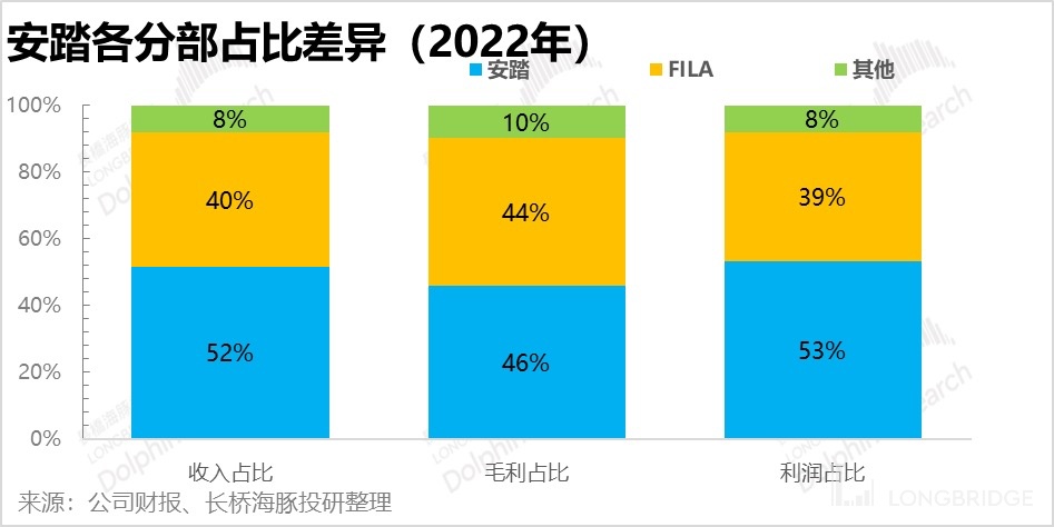 在盈利质量上,安踏品牌和 FILA 也渐渐走出分歧。