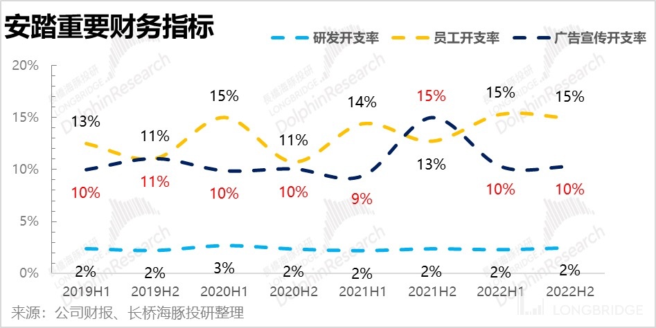 毛利率我们前文分析过,由于 DTC 的提升使得综合毛利率稳住,这里我们不再赘述。除了成本方面的努力以外,公司在费用控制上面也竭尽所能,主要是广告开支上面有比较明显的控制。