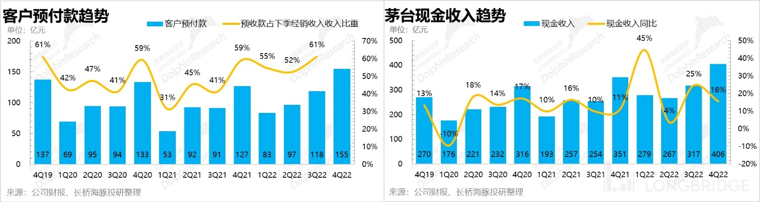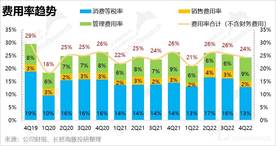 短期来看,四季度的合同负债又有小幅提升,环比增加 36 亿,目前余额已经达到 155 亿元,结合营收情况,基本上维持住了 “现金收入” 的增速趋势。另外,跟踪最近的出货节奏,节后至今批价稳定,经销商打款积极性也不错。结合长短期的情况,海豚君判断,公司今年的目标实现几乎没有大障碍。