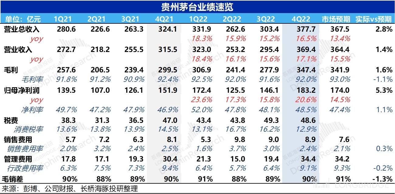 贵州茅台(600519.SH)北京时间 3 月 30 日周四晚上发布 2022 年年度报告。实际的营业收入及利润情况与公司在去年年底发布的生产经营情况公告没有出入,四季度延续了前三季度的增长趋势。财报核心要点如下: