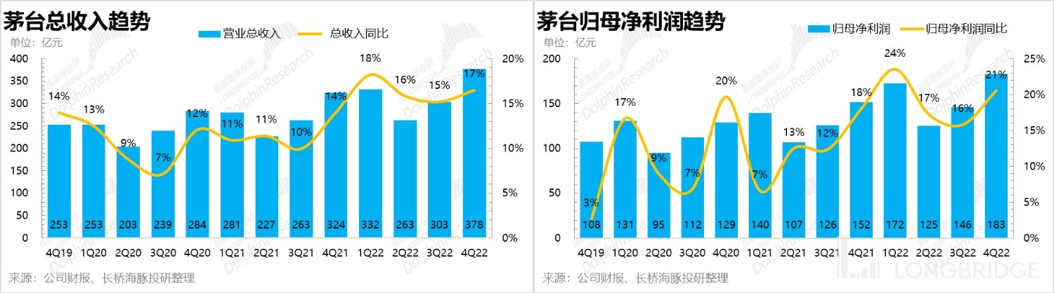 本期财报中,较为向好的趋势是,茅台的毛利率依旧稳住,同时费用端也没有掉链子,因此利润增速和收入增速拉开了比较明显的差距,增长站上 20% 也算是一个小小的亮点了。