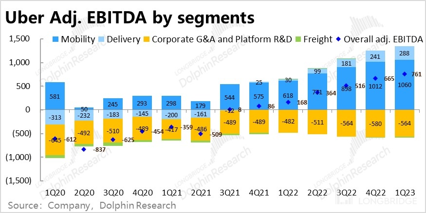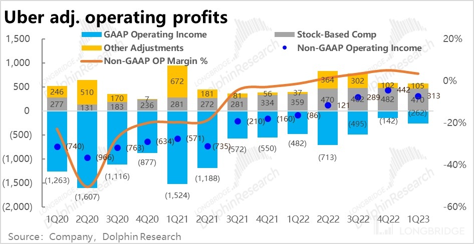 1)打车业务的 Adj.EBITDA 为 10.6 亿美元,略高于市场预期的 10.1 亿。