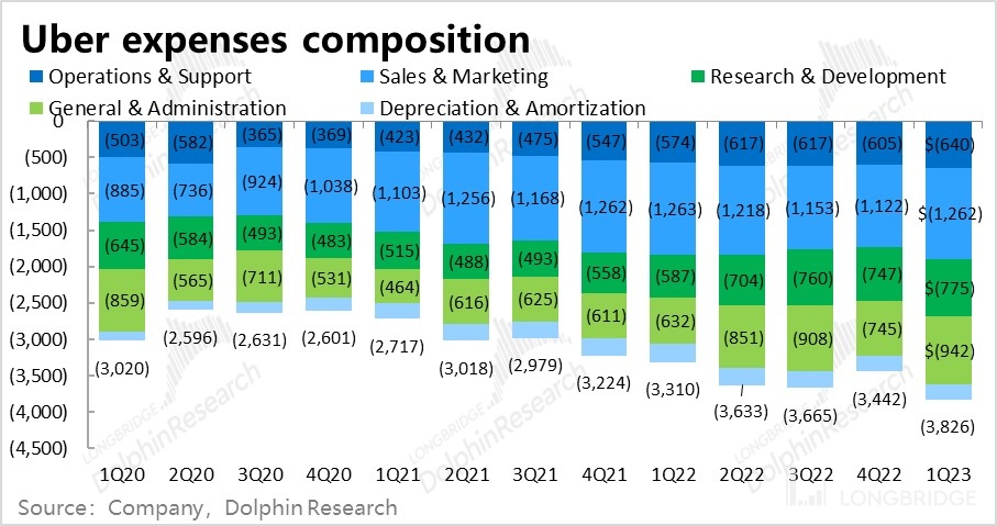 4. 增长坚挺但费用膨胀,亏损再度扩大?: 虽然打车和外卖业务的增长坚挺,变现率继续提升下,毛利率也在改善,实现毛利润 35.6 亿美元,高于预期的 34.5 亿。