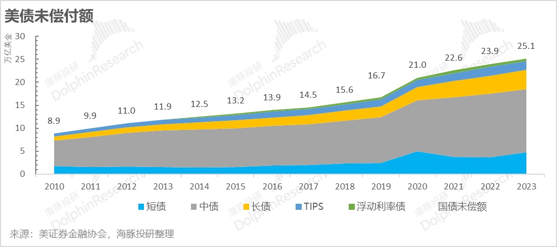 只是问题是,在经济高增的顺周期内大搞逆周期的财政赤字行为,有两个问题: a) 美国财政接下来还会花钱如流水呢?b) 如果真继续赤字的话,以后去问谁借钱?接下来,海豚君继续在这两个问题上深挖。