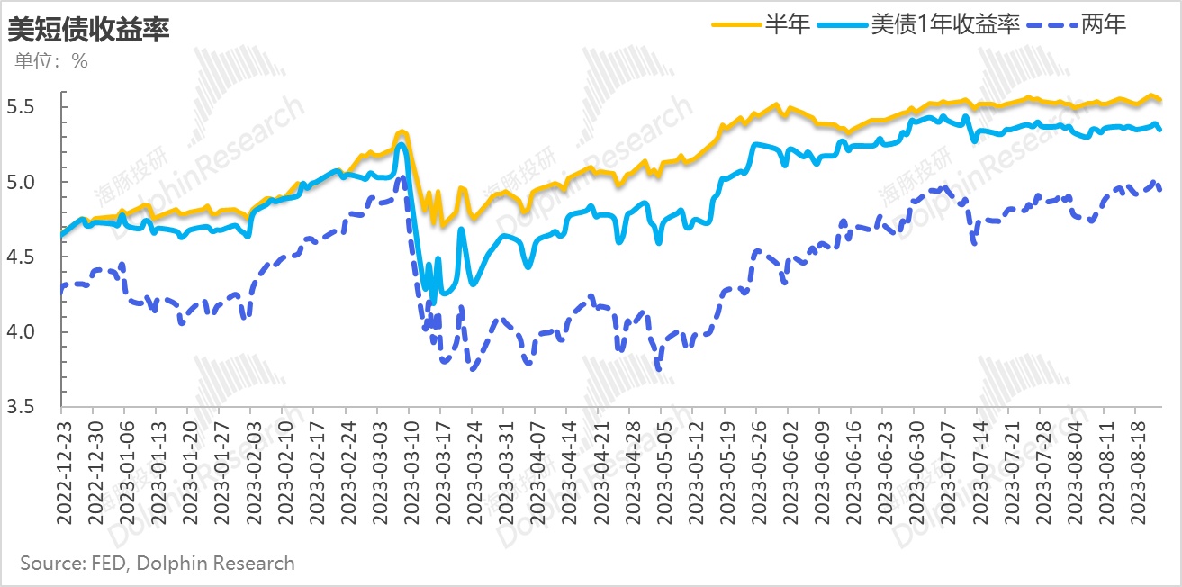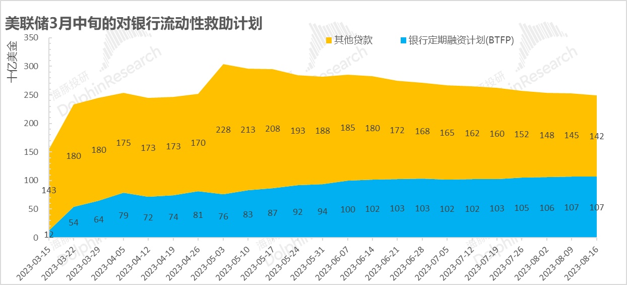 在缩量长债资产的同时,短期资产因意外事件出现爆棚:3 月中旬的美国中小银行流动性危机,又导致美联储额外放贷救急,现在还有 2500 亿美金流动性。