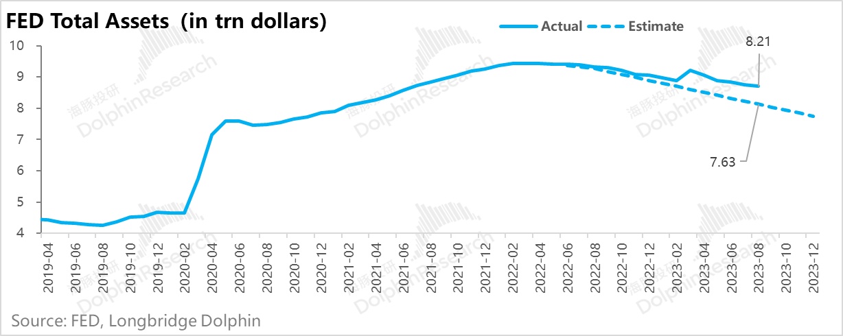 按照原本缩表规划,国债 +MBS 到今年 8 月应该共计到期回收接近 1.3 万亿;