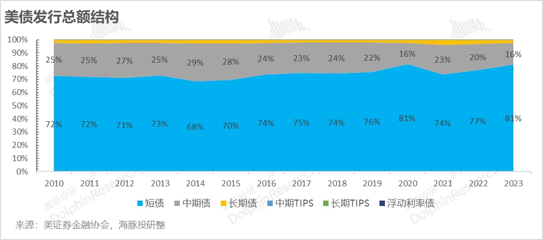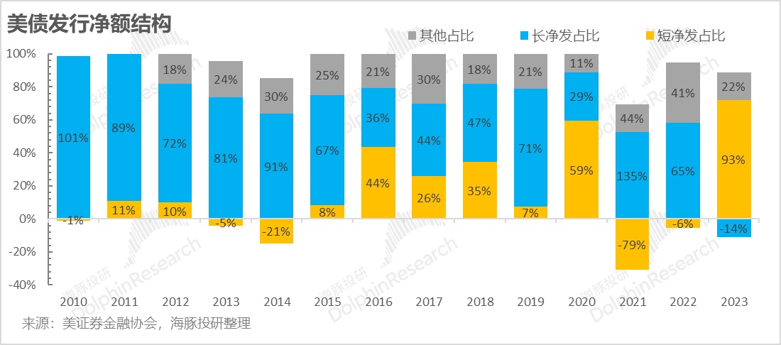 A)美国财政截止 7 月底,基本都在用短债融资,发行比例严重畸形(下图 2023 年为 2023 年截止 7 月底的数据)。